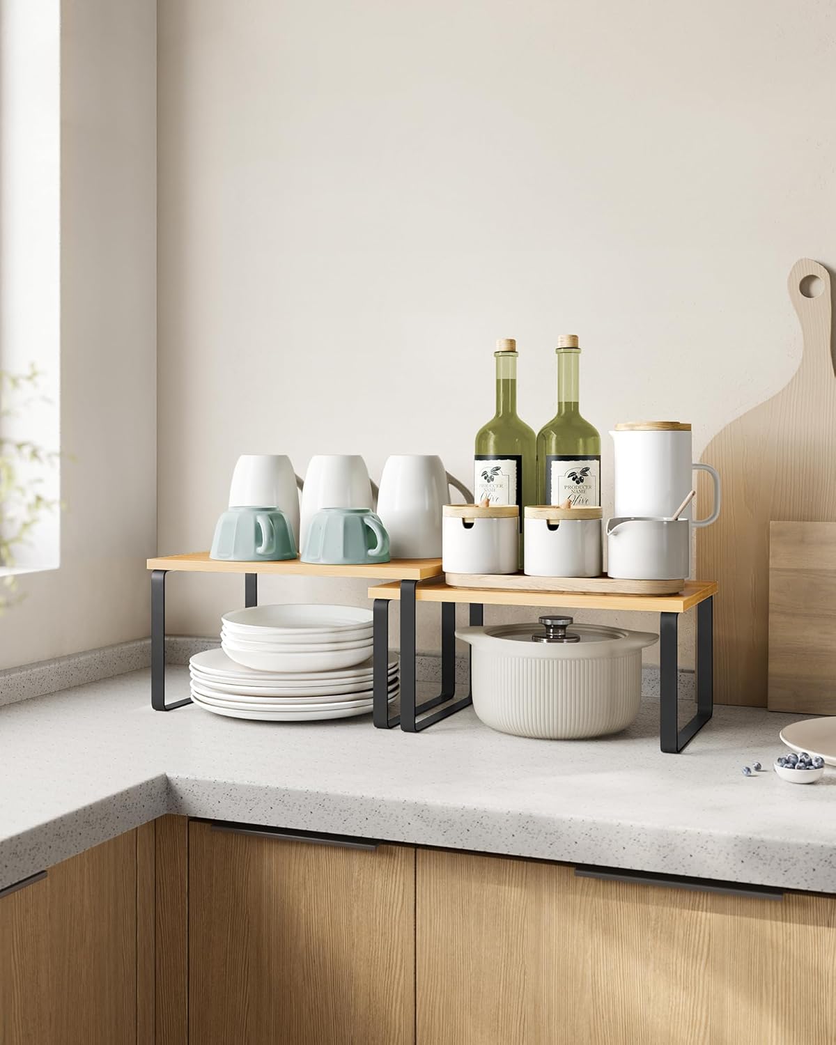 Perfect for organizing spices, canned goods, jars, and more, these shelves are a versatile and practical addition to any kitchen. Say goodbye to cluttered countertops and hello to a more organized and efficient cooking space with the SONGMICS Cabinet Organizer Shelf.